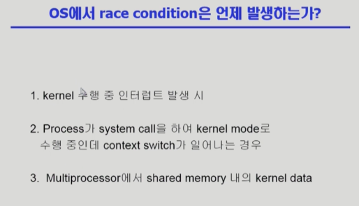 정리하자면 OS에서 race condition이 발생하는 경우는 크게 3가지이다.