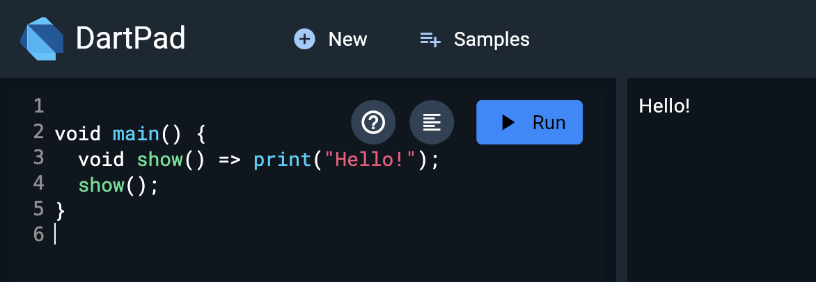 반면 Dart 같은 경우 같은 코드임에도 에러가 나지 않고있음을 확인할 수 있는데 이는 내부적으로 void가 null을 반환할 수 있는 타입으로 동작하기 때문이다.