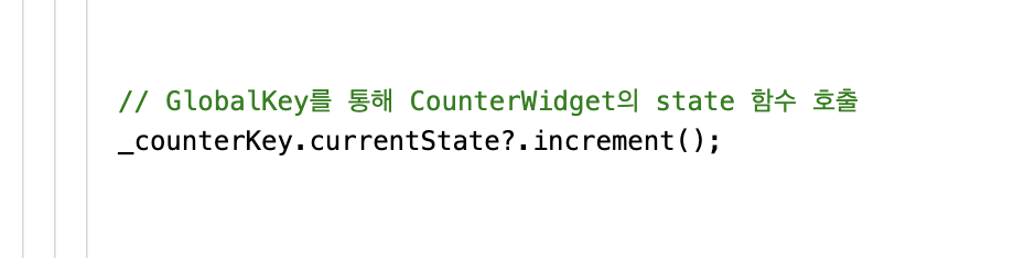 위 코드와 같이 외부클래스/위젯(ParentWidget) 에서는 Stateful 위젯의 Sate객체 메서드에 직접 접근할 수 없다.
