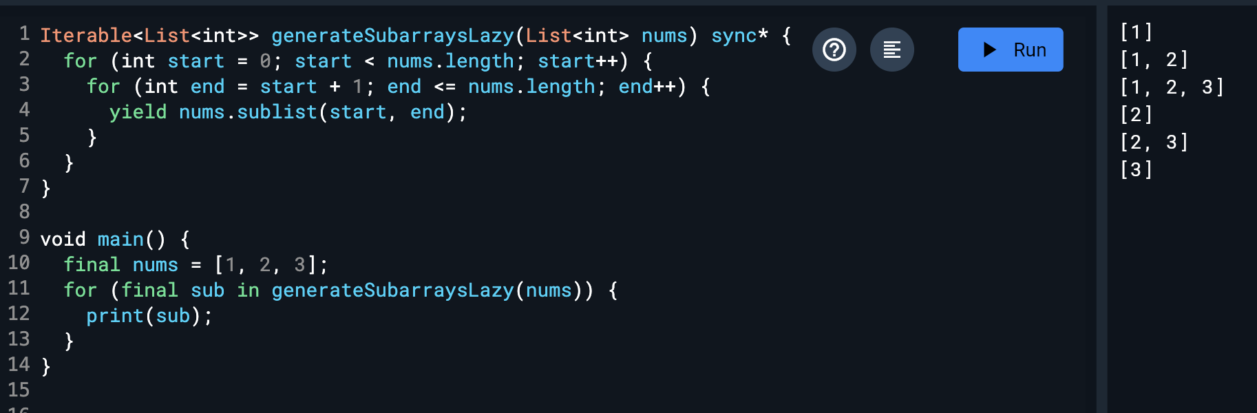 | 지연 평가 | Iterable (sync* + yield) | Stream (async* + yield) |
