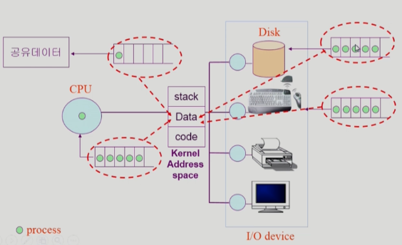 5. 이러한 프로세스 큐들은 커널 데이터 영역의 PCB에 의해 관리된다.