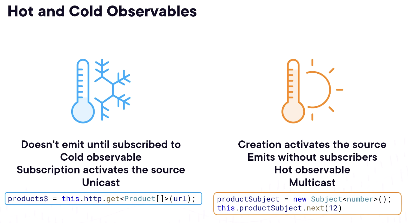Cold Observable은 누군가 구독을 하기 전까지 값을 방출하지 않는다. 값을 방출할 때도 유니캐스트 방식으로 나가게 된다. 반면 Hot Observable은 값 방출을 구독자 없이도 하며 누군가 구독하게 된다면 멀티캐스트 방식으로 값을 방출하게 된다. 그래서 이러한 특성이 함의하는 무엇일까?